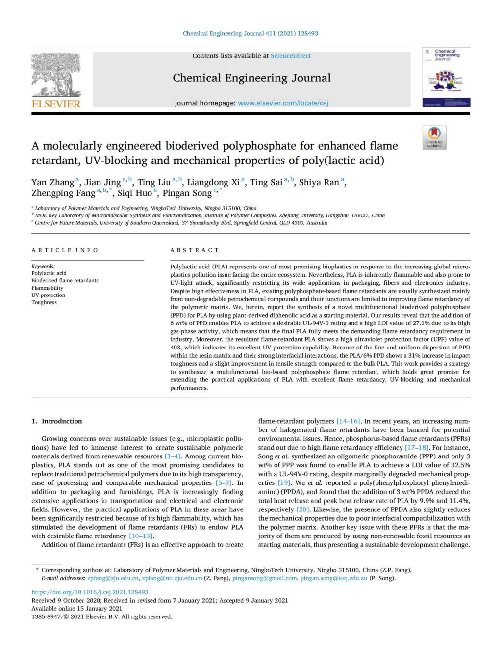 【ESI高被引论文】张艳教授在Chemical Engineering Journal上发表研究论文