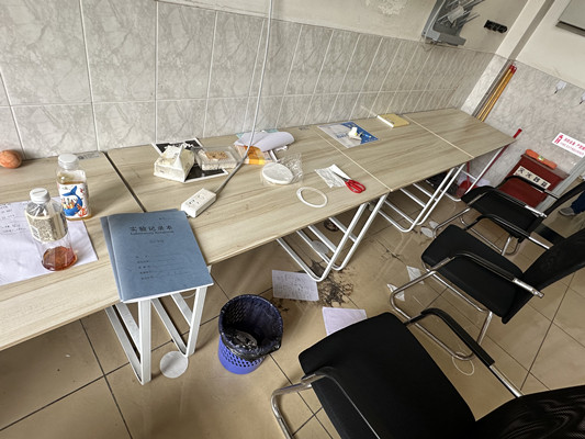 4、NE314实验室:仪器设备未使用时插头未拔掉;实验室内卫生状况较差,并有学生在实验室内饮食现象。