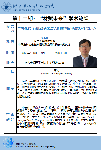 主讲嘉宾:李志伟(河南大学特聘教授,中国塑料协会塑料阻燃及应用专委会特邀专家)
