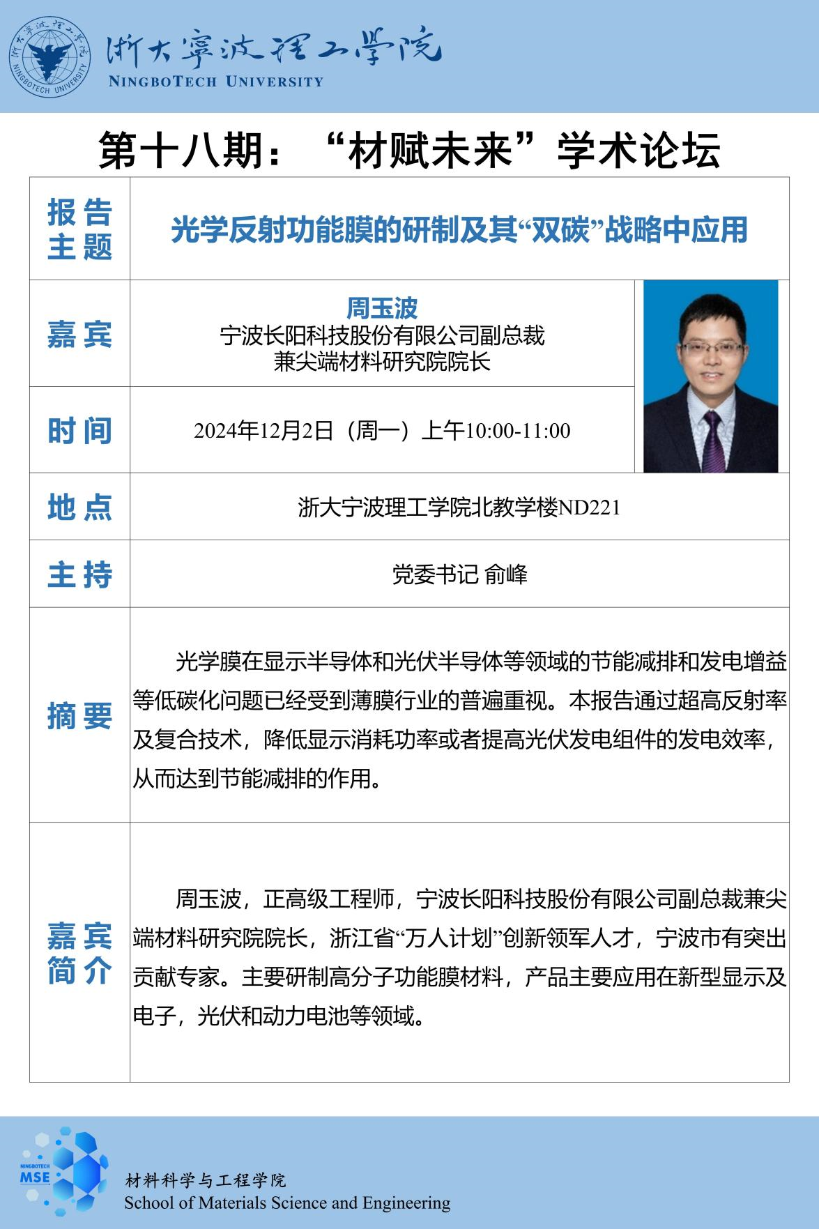 主讲嘉宾:周玉波(宁波长阳科技股份有限公司副总裁兼尖端材料研究院院长)
