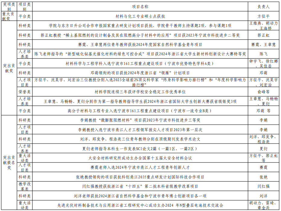 经学院教师自荐或系所推荐,并经学院人力资源委员会和党政联席会审议,现将2024年度材料学院突出贡献奖评选结果公示如下(推荐顺序不分先后):